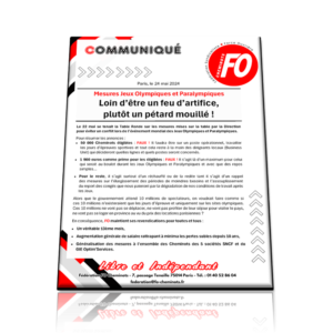 Réuni les 27 et 28 juin 2024 à Paris, le Bureau Fédéral, instance dirigeante de la Fédération FO des Cheminots, rappelle à la veille des élections législatives qu’il ne donnera aucune consigne de vote, préservant par là sa liberté de