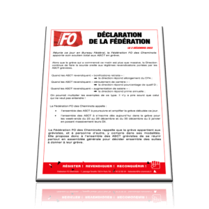 Réunie ce jour en Bureau Fédéral, la Fédération FO des Cheminots apporte son soutien total aux ASCT en grève.