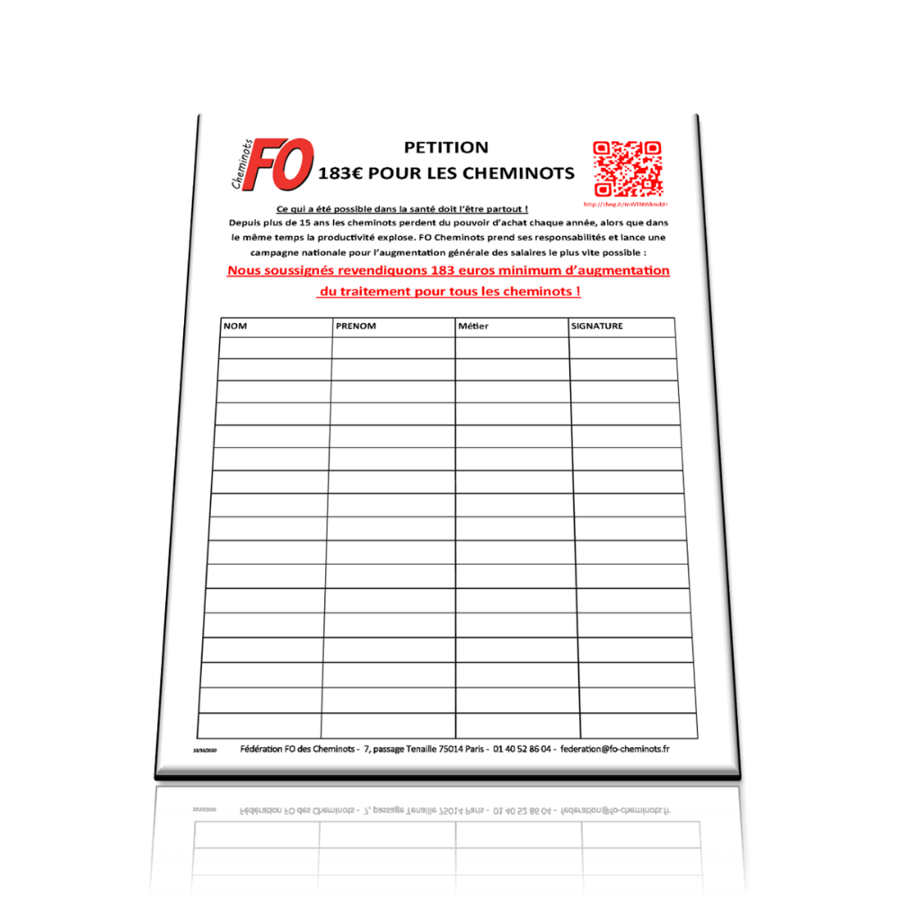 PETITION – 183€ pour les Cheminots Télécharger la pétition