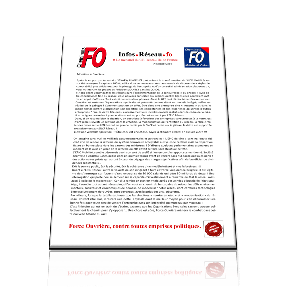 Le mensuel FO du CE Réseau Ile de France Novembre 2016