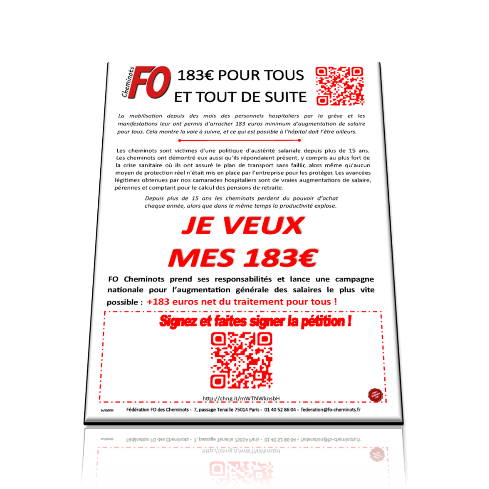 PETITION – 183€ pour les Cheminots Télécharger la pétition