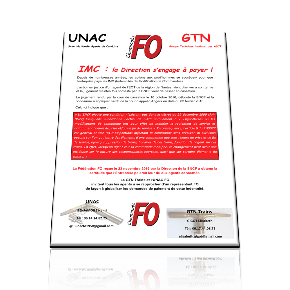 IMC (Indemnités de Modification de Commandes) : la Direction s’engage à payer ! [gview file= »https://backup.staging.fo-cheminots.fr/wp-content/uploads/2016/11/Tract-IMC.pdf »] Télécharger en pdf